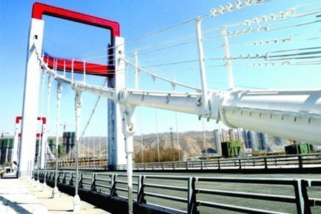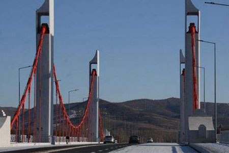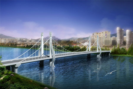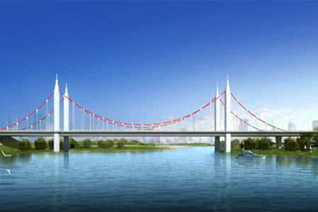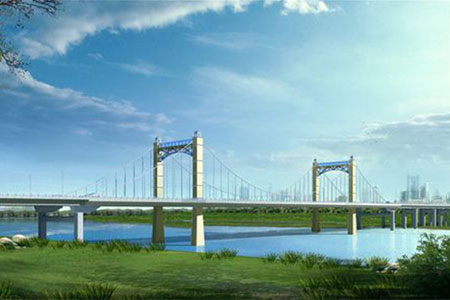 牡丹江市西十一條路跨江大橋工程,全橋長(zhǎng)約1740米,主橋?yàn)樽藻^式懸索橋,南北引道...