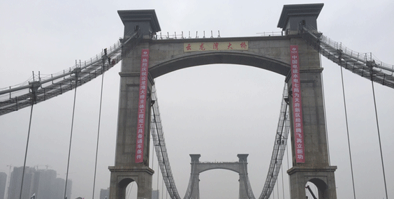 中國首座大跨度鐵路懸索橋-麗香鐵路金沙江特大橋 首個散索鞍順利安裝到位