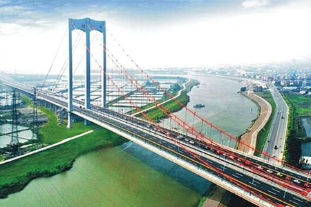 杭州江東大橋又稱(chēng)錢(qián)江九橋,大橋全長(zhǎng)4332.5米,大橋設(shè)計(jì)新穎,其中三跨空間纜自...
