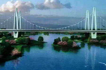 吉林霧凇大橋是雙塔自錨式混凝土懸索橋,全長(zhǎng)991米、寬32米,自錨式混凝土...